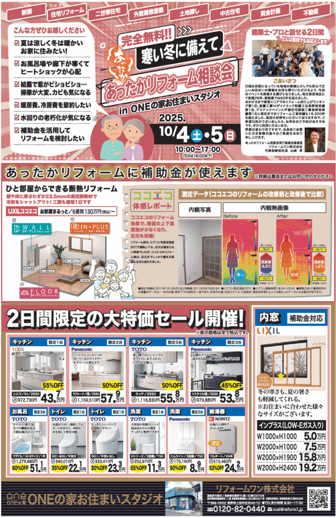 上田市住吉のONEの家お住まいスタジオで開催される “あったかリフォーム相談会” です☆