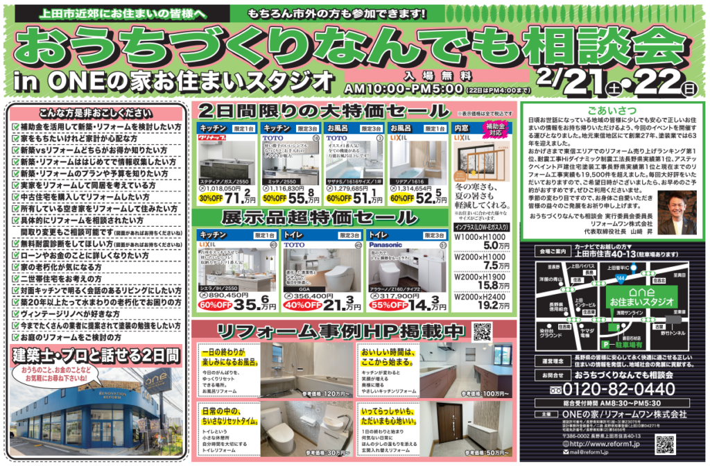 上田市住吉のONEの家お住まいスタジオで開催される “おうちづくりなんでも相談会” です☆