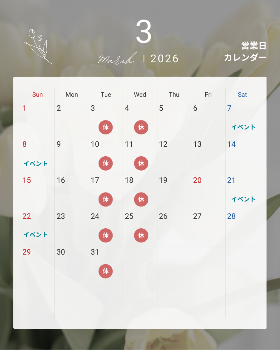 3月の営業日カレンダーのご案内です。