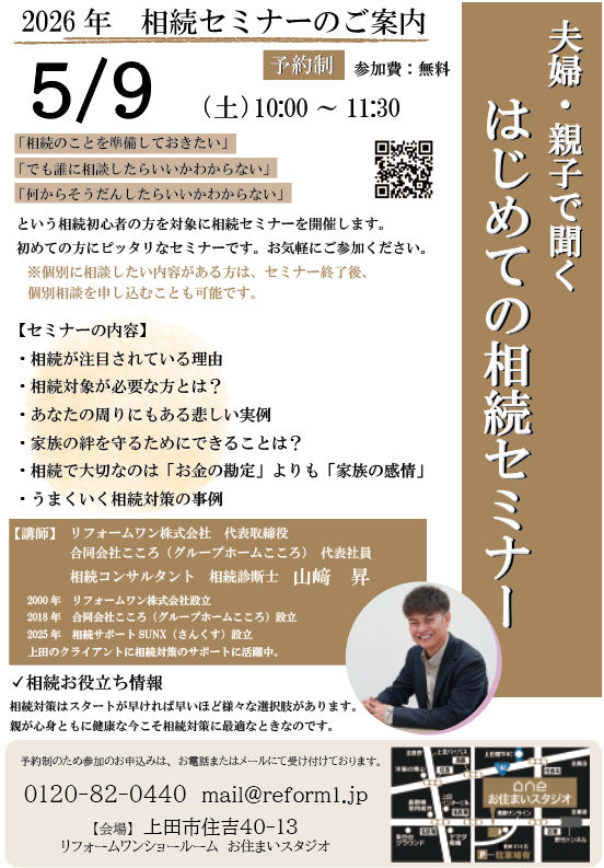 そんな声に寄り添い、家族の“想い”を大切にした相続の基礎をわかりやすくお伝えするセミナーです。